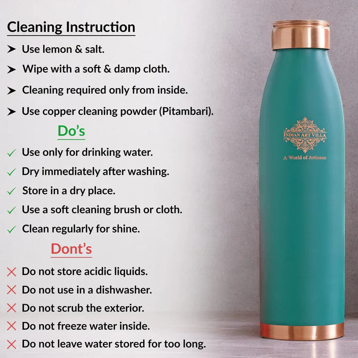 Pure copper construction delivers superior thermal properties, keeping beverages at your desired temperature longer than conventional bottles. The lacquer-coated silk finish provides a sophisticated aesthetic while protecting the copper from oxidation and tarnishing. This 900 ML capacity suits daily hydration needs without excessive bulk. Copper's natural antimicrobial properties help maintain water purity, making this bottle both a practical choice and an elegant addition to your wellness routine. Hand-wash recommended to preserve the finish.